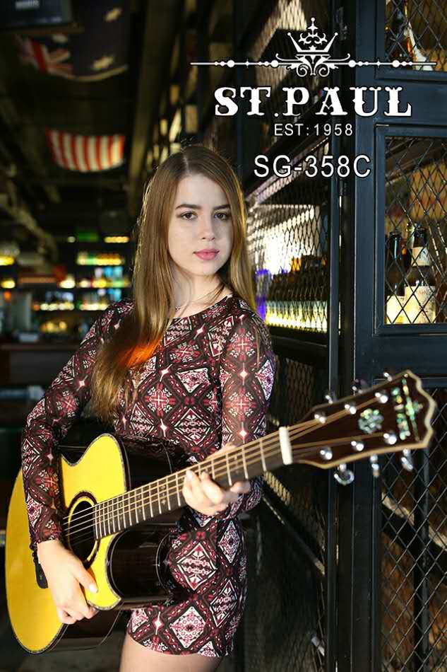 ST.PAUL 圣保羅SG-358C,高貴不失典雅。面板精選頂級云杉為原料加之背側板的玫瑰木實木設計,讓其音質更加飽滿圓潤。琴頸精選桃花芯木,增加手感舒適度。牛骨用料的上下弦枕,致使其音色更加明亮通透。