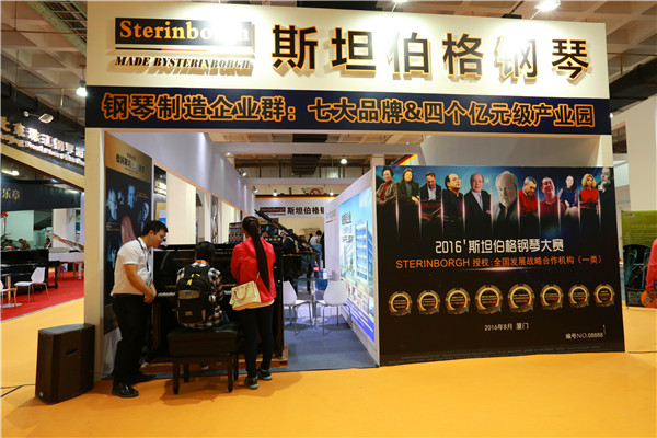 在廈門斯坦伯格鋼琴的展位內遇到廈門斯坦伯格鋼琴有限公司的總經(jīng)理葉燈陽先生,他指著展示墻為我們介紹了企業(yè)冠名承辦的“2016斯坦伯格杯全國鋼琴調律師職業(yè)技能競賽”活動,對于提高品牌知名度與獲得技術支撐將意義深遠。他告訴我們,斯坦伯格一邊制造鋼琴,一邊做鋼琴教育已經(jīng)有一段時間了,廈門是鋼琴之鄉(xiāng),其因為鼓浪嶼如一臺打開琴蓋的鋼琴而得名,許多聞名中外的音樂家在這里誕生和成長,擁有鋼琴教育的天然土壤。“我們目前已經(jīng)有一個圣桑教育連鎖的藝術教育品牌,目前已經(jīng)在全國擁有1000多家琴行連鎖。”葉總興奮地表示,企業(yè)依托藝術教育的連鎖已經(jīng)逐漸摸索出了一條自己的路。